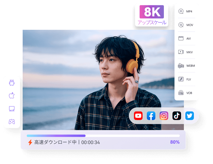 元の品質のまま4K/8K/HD動画をダウンロード。最大4320p対応!